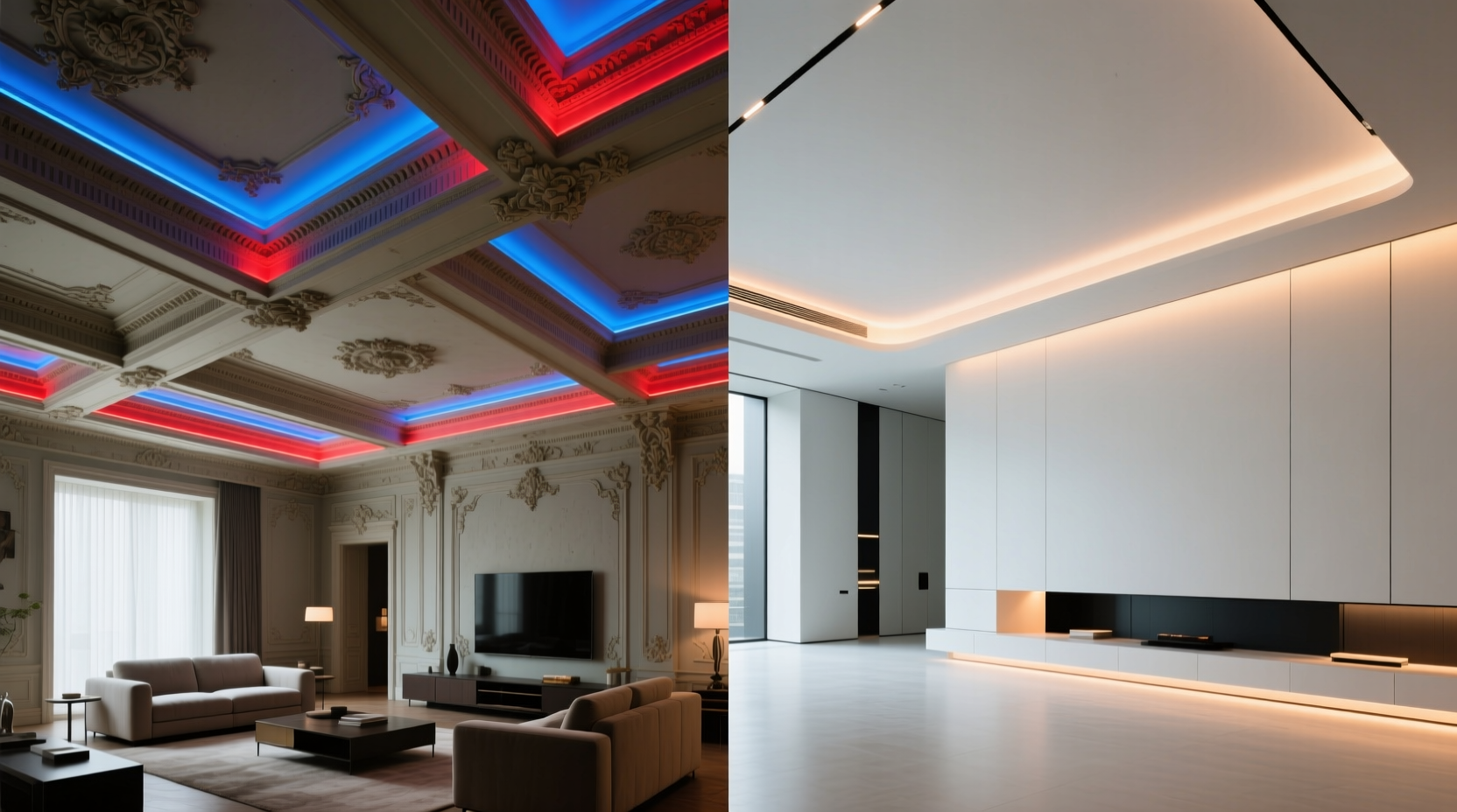 For years, the Egyptian market has been obsessed with complex Gypsum board ceilings (The "Wedding Cake" effect). This is officially dead. The heavy layers of gypsum not only reduce the visual height of your room but also collect dust and require frequent maintenance due to thermal expansion cracks.